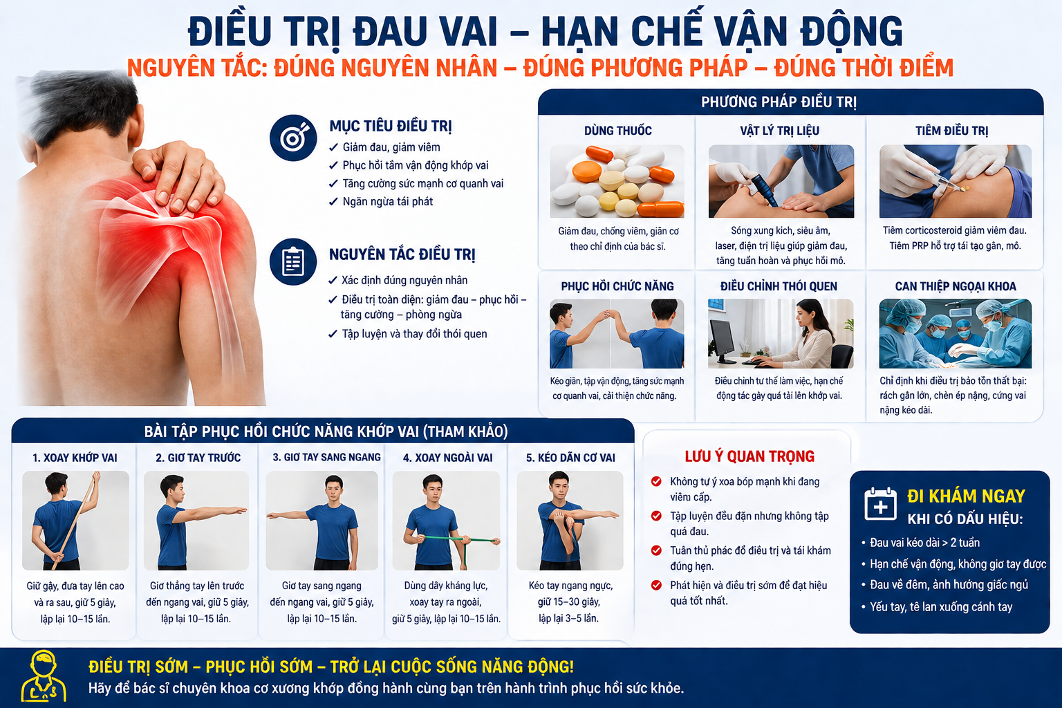 Nếu bạn đang bị đau vai, khó giơ tay, mặc áo khó khăn hoặc đau kéo dài không cải thiện, bạn nên được thăm khám chuyên sâu.